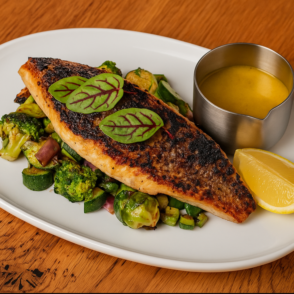 12 Oz Grilled Skirt Steak. Dos acompañantes a escoger